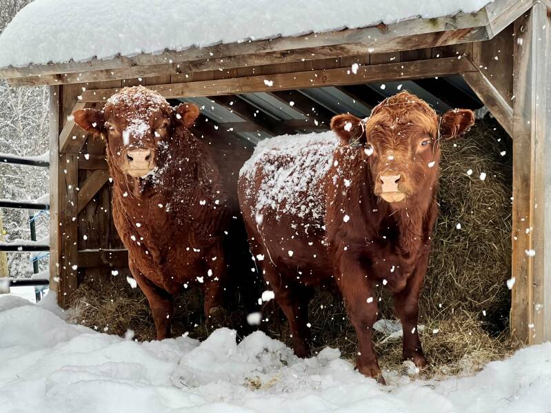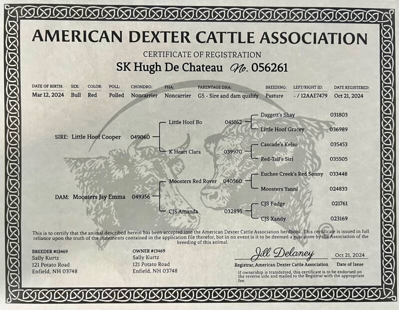 Born during a blizzard, Hugh is an 1,100lb nugget with perfect proportions. We're enjoying his personality while he contemplates adding weight and inches to compare with Apollo. Hugh is homozygous polled, A2/A2, is PHA- and chondrodysplasia free, and has a stunning example of a red coat courtesy of his E+/e genetics.
